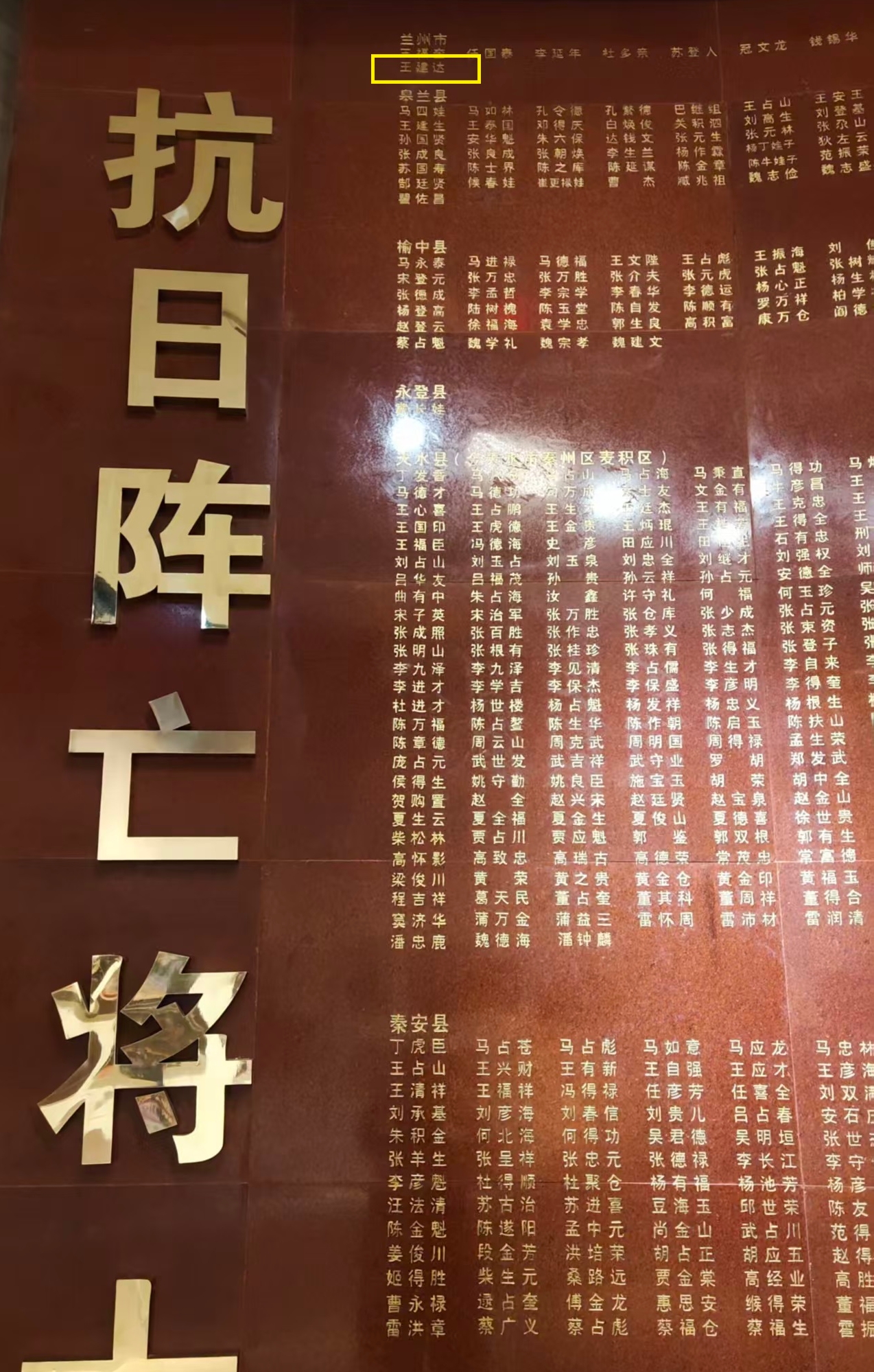 此次補刻的兩位烈士,分別是蘭州籍抗戰(zhàn)烈士王建達、寧夏固原縣(原甘肅固原縣)抗戰(zhàn)陣亡烈士余炳連。