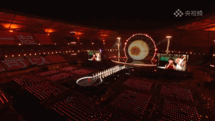 光,也是這場敘事中無聲的語言。燈光總監(jiān)董江從鴻蒙系統(tǒng)的開機(jī)動畫中汲取靈感,將極具辨識度的“星環(huán)”造型貫穿整個場館空間。設(shè)計團(tuán)隊不僅用數(shù)百臺燈光設(shè)備在舞臺上空構(gòu)建了一個直徑31米的超級光環(huán),更在體育場內(nèi)豎立起8組高達(dá)24米的立體燈光塔,讓每一位觀眾都被籠罩在“在一起”的視覺敘事之中。據(jù)總導(dǎo)演田梅介紹,那打動了無數(shù)網(wǎng)友、點綴在觀眾席上的四萬盞燈球,并非輕易鋪就的背景,而是歷經(jīng)超百位工人三次接力安裝、反復(fù)調(diào)試才得以呈現(xiàn)的呼吸光海。最初,這一設(shè)計曾因執(zhí)行難度而面臨調(diào)整,但在總導(dǎo)演田梅的堅持下,最終被完整保留。在她看來,這片星海是對盛典主題內(nèi)核的生動詮釋:“‘在一起,就可以’不僅是一句口號,更是對這個時代最溫暖的注腳。它告訴我們:再遙遠(yuǎn)的夢想,也終將在并肩同行中,變得觸手可及。”隨著節(jié)目播出,燈球呈現(xiàn)出“在一起,就可以”“鴻蒙星光盛典”等字符,明亮而浪漫。四萬星光分散在每一張座椅上,如同散落在千行百業(yè)、千家萬戶中的每一個開發(fā)者與用戶;它們又能連成一片星海,展現(xiàn)出“在一起,就可以”的力量。