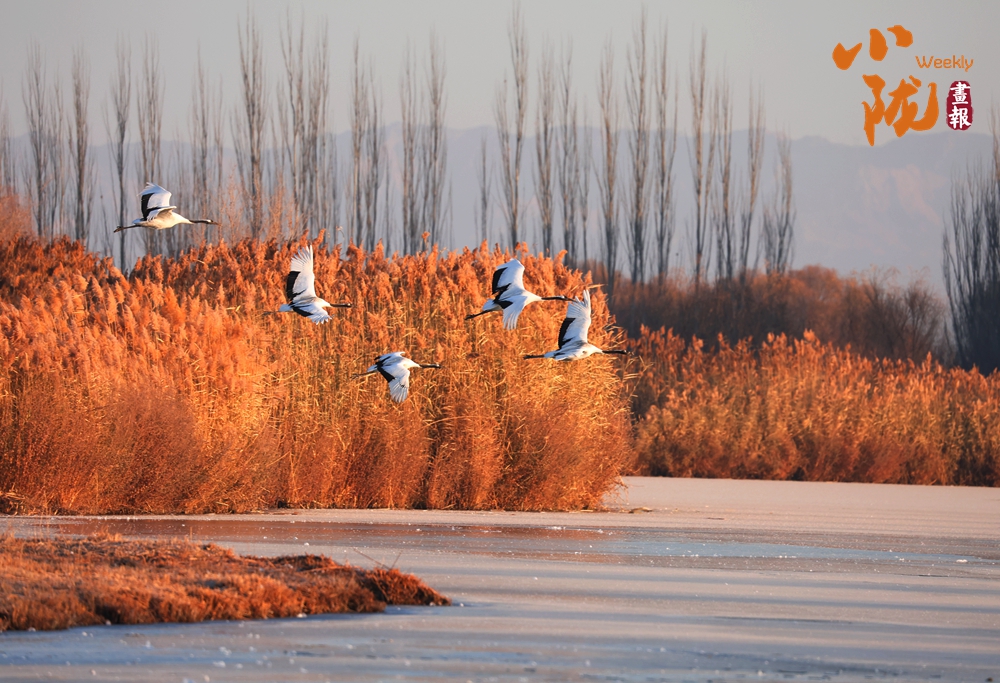 冰面映照著澄澈藍(lán)天,丹頂鶴展翅掠水,引頸高歌,清脆的鳴叫聲仿佛是大自然奏響的美妙樂(lè)章。