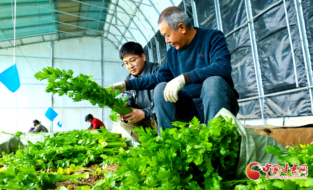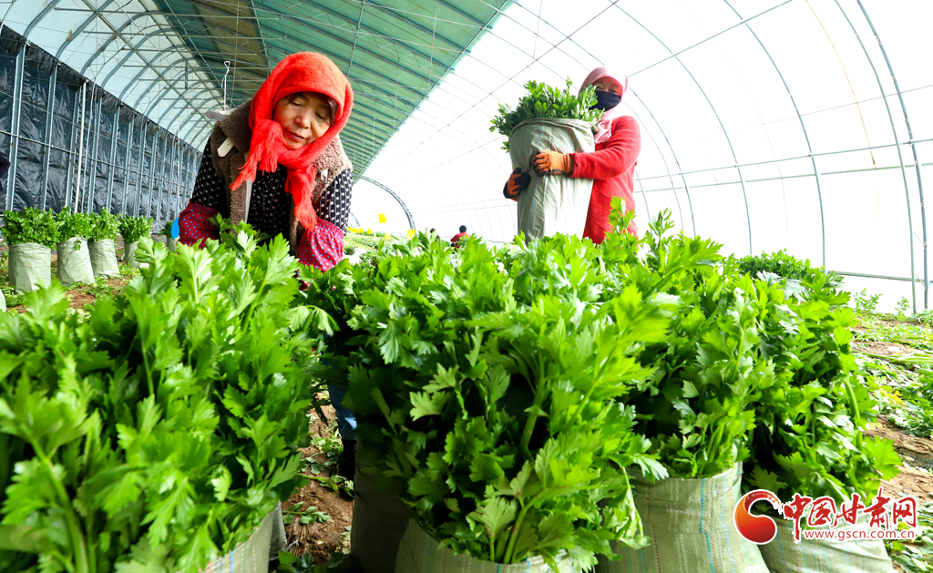 1月29日,臨澤縣鴨暖鎮(zhèn)古寨村的農(nóng)業(yè)大棚內(nèi),芹菜正值采收季。種植戶們忙著收割、打捆、裝箱,準(zhǔn)備將這批新鮮蔬菜發(fā)往新疆、內(nèi)蒙古等地,保障冬季市場供應(yīng)。