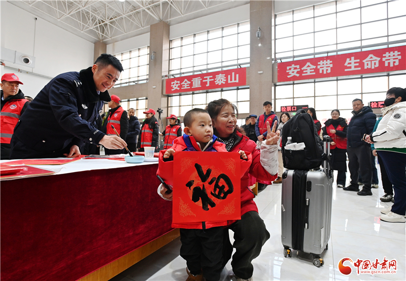 活動現(xiàn)場設置了“平安送福”“登車叮囑”等宣傳服務項目,現(xiàn)場為旅客、駕駛?cè)速浰痛郝?lián)、福字,提醒春運文明安全出行。