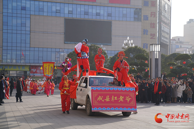 作為千年古縣,春節(jié)文化活動是新春佳節(jié)的重要組成部分,承載著成縣人民對美好生活的向往和期盼。2026年社火展演活動,成縣廣泛動員文旅系統(tǒng)干部職工、廣場舞協會會員、社會志愿者、傳統(tǒng)文化愛好者、非遺傳承人等800余人齊聚一堂,傾情參演,共同為全縣廣大群眾提供了新春文化大餐。