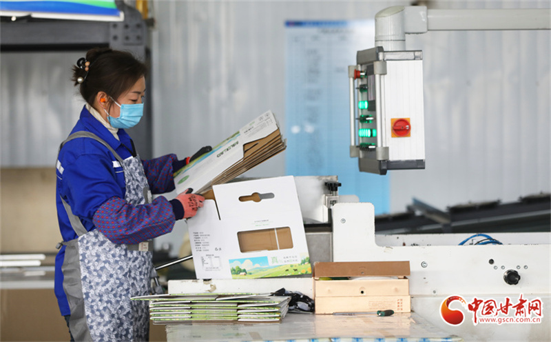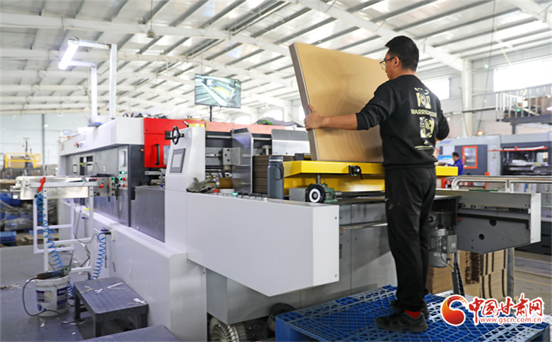 時下,在位于民樂工業(yè)園區(qū)的一家生產(chǎn)車間內(nèi),工人們正緊張有序地進(jìn)行包裝盒裝配、成型作業(yè)。