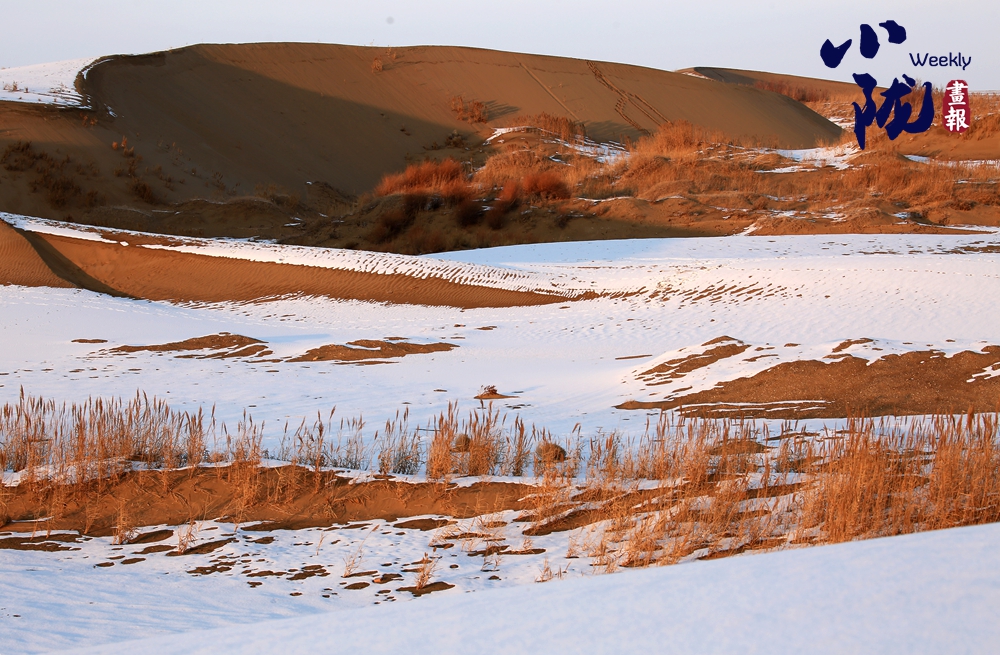 白雪覆蓋著金黃沙丘,而枯黃的蘆葦仍倔強生長于沙地之間。這不僅是色彩的疊映,更構(gòu)成了一幅堅韌的畫卷:冷與暖、靜與動,在遼闊的天地間,交織成一篇關(guān)于守望與重生的故事。