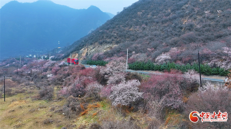 S203沿線的山坡上桃花如霞